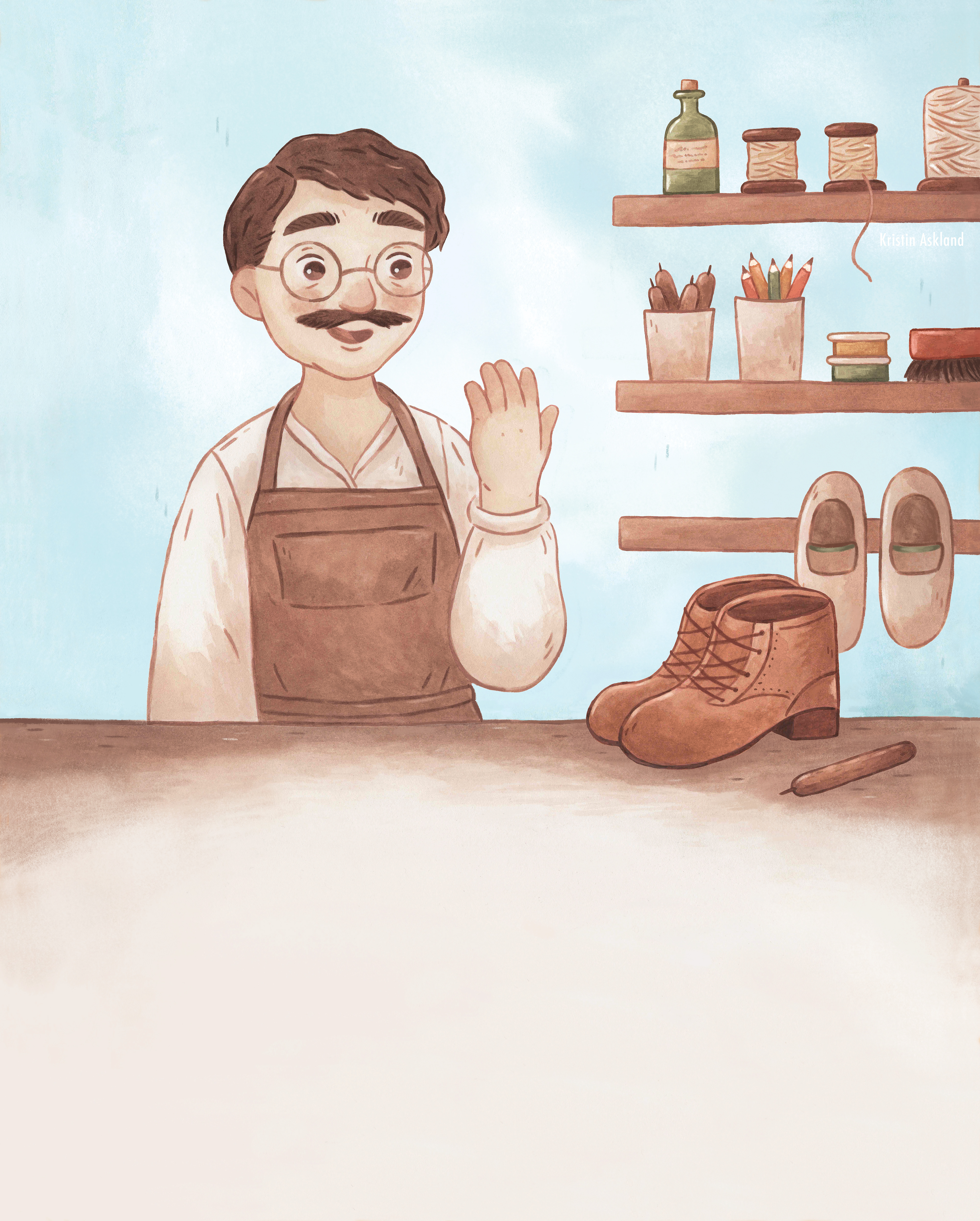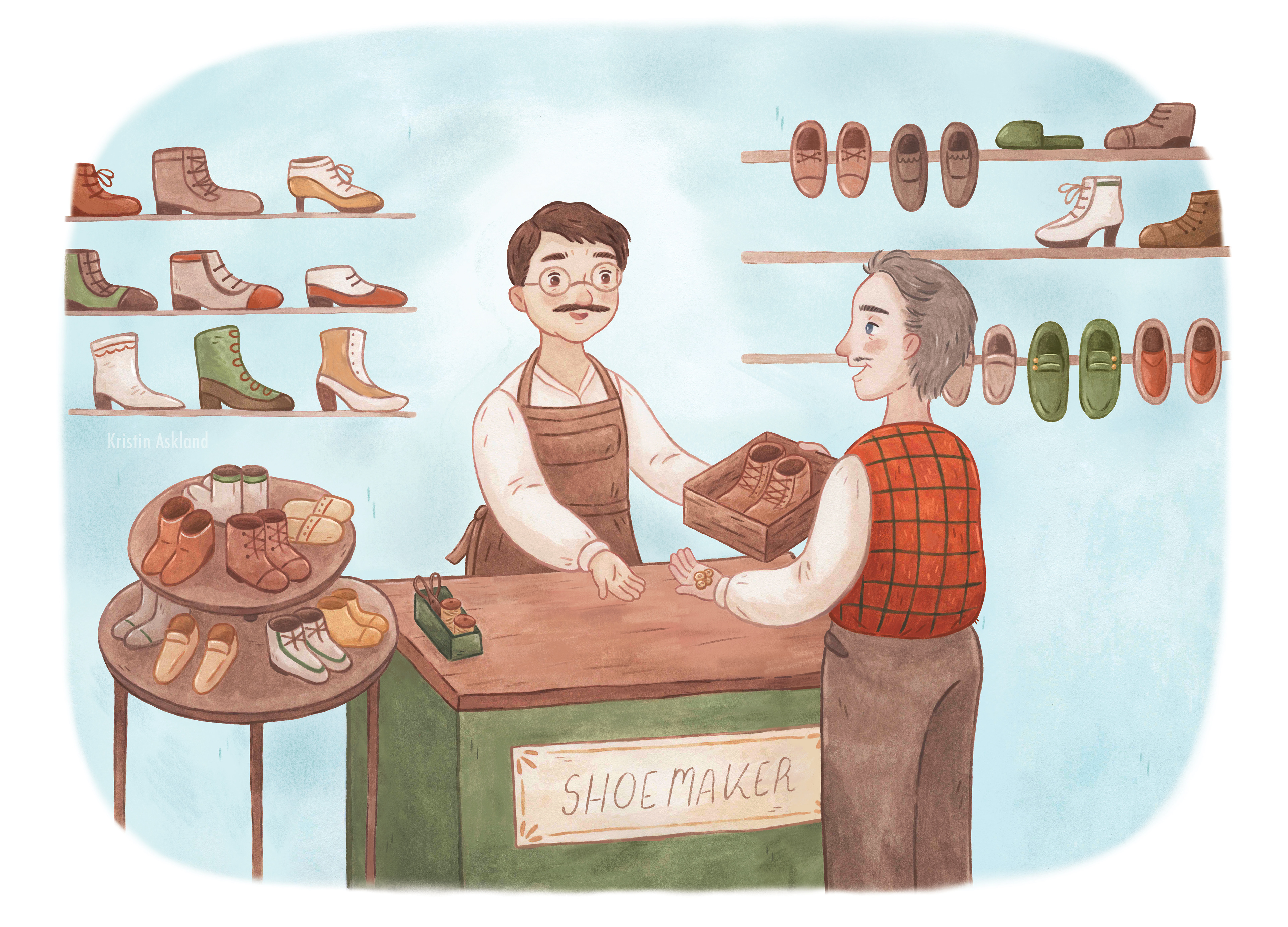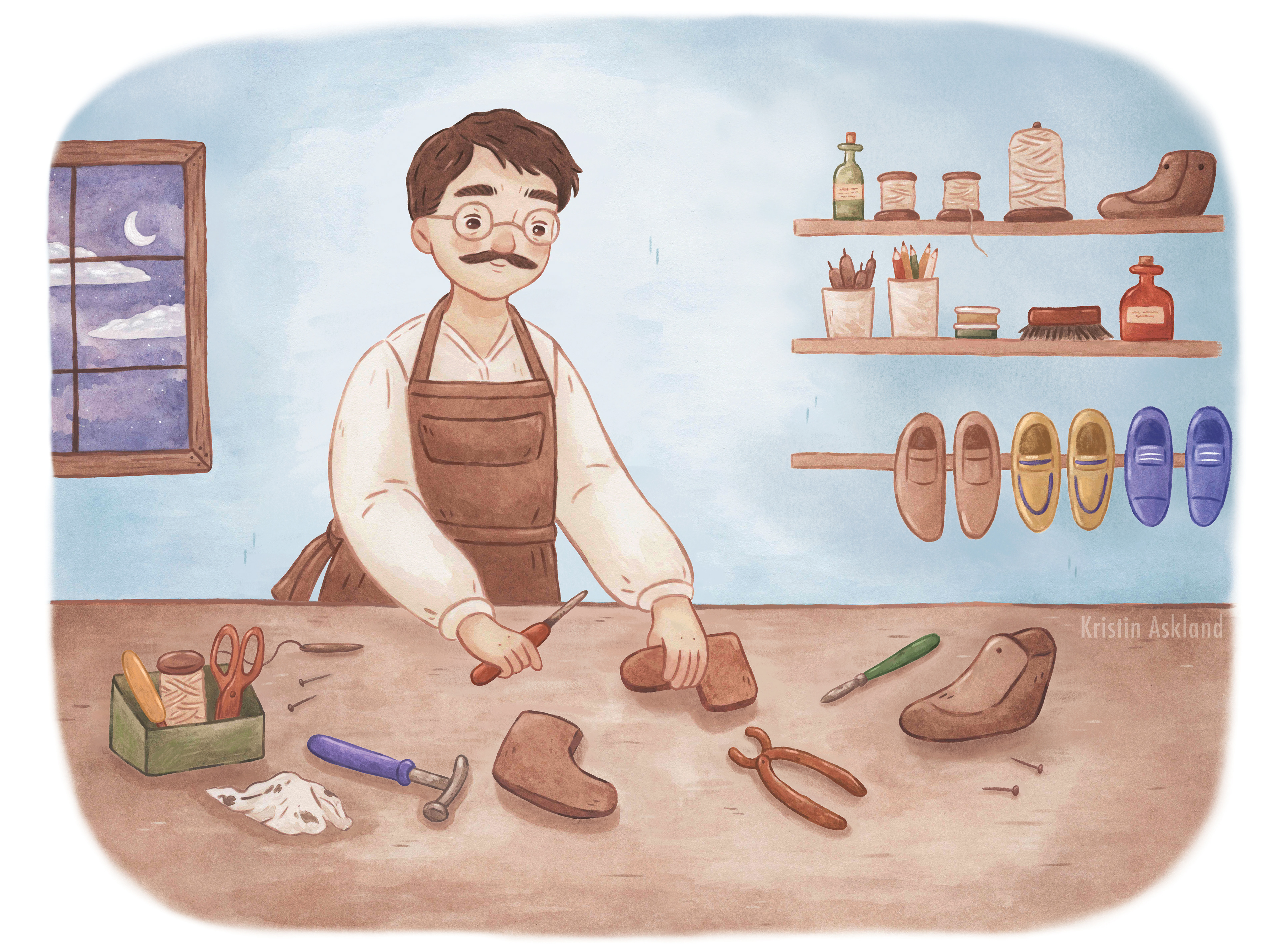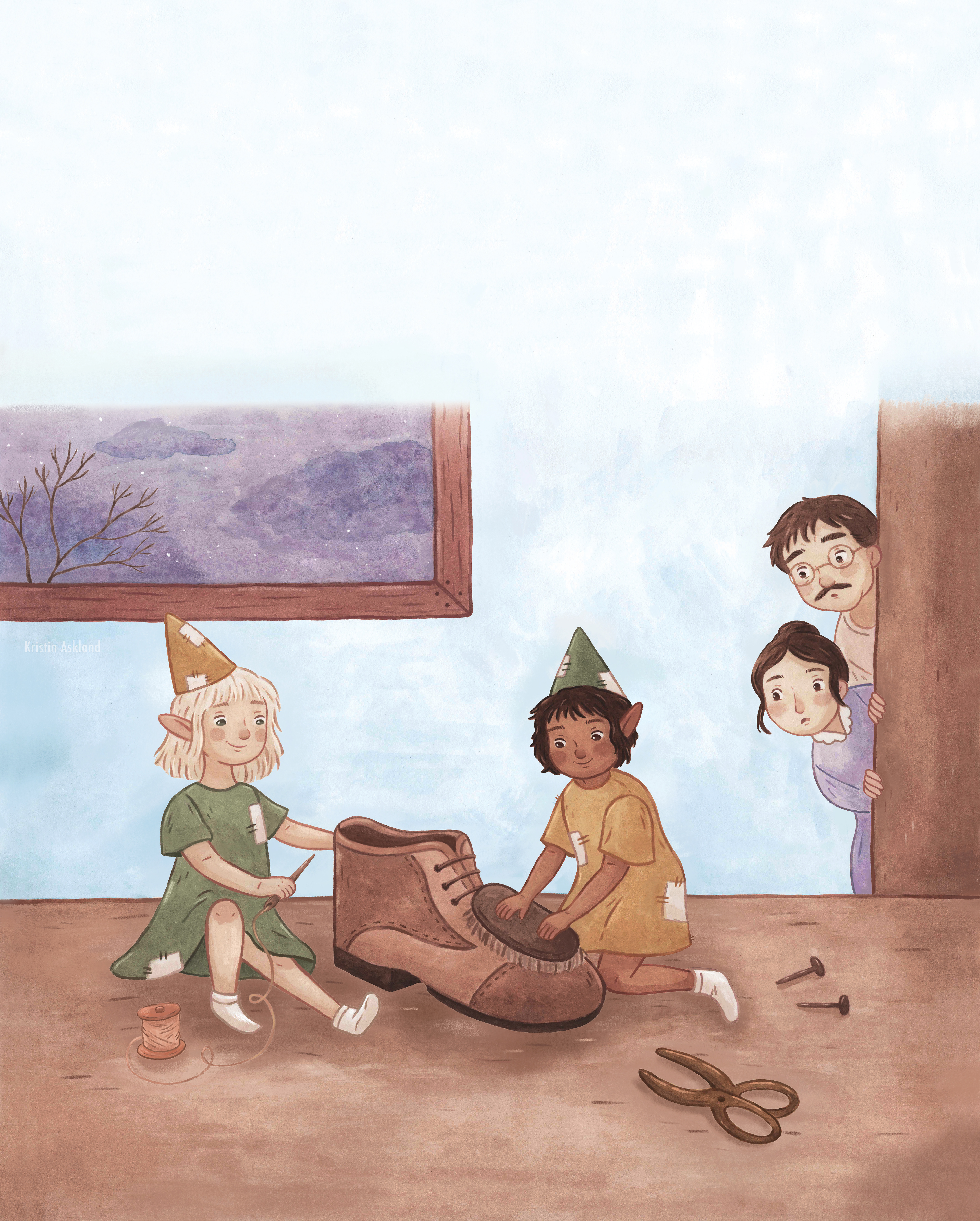 The classic tale by the Brothers Grimm, The Elves and the Shoemaker illustrated by me.
