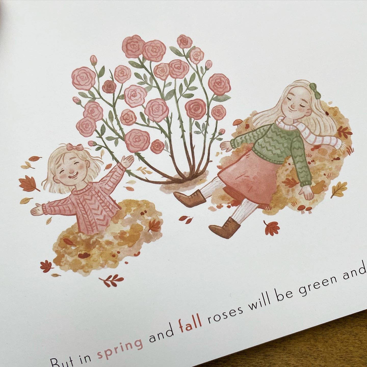 Follow along the sisters Audrey and Poppy as they lead you trough how to care for roses. Growing Roses is the perfect book for any garden lover and encourages readers to explore what's growing and living in their garden! The illustrations are painted with watercolour and gouache, then digitally finished and tweaked after scanning.